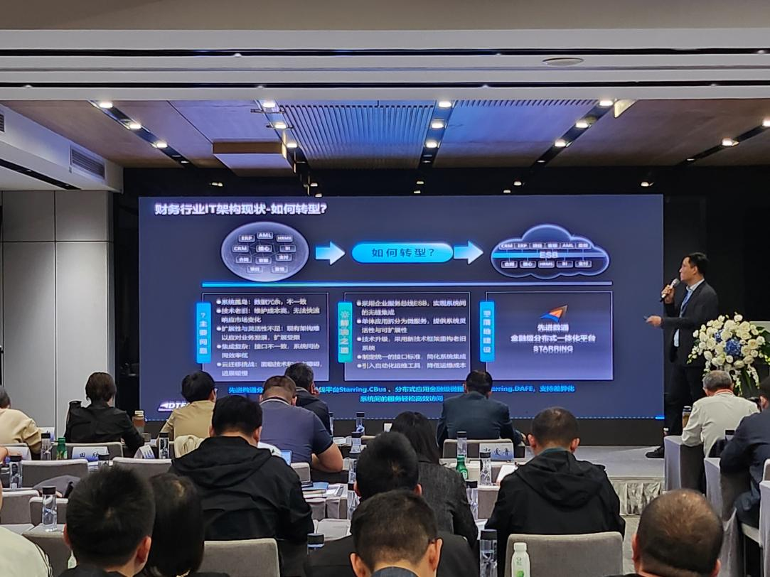 凯发k8国际代表讲师郭钰以《昆仑与凯发k8国际ESB解决方案助力财务行业创新与架构转型》为主题作发言分享。他深入剖析了当前财务行业IT架构面临的挑战,包括系统孤岛、技术老旧、扩展性不足等问题,并提出了基于企业服务总线(ESB)和微服务架构的转型方案。